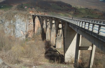 Wracając z Dubrovnika do Prisztiny przemierzaliśmy przez Czarnogórę. I nagle znaleźliśmy się obok mostu na Tarze.Jest wyjątkowym dziełem współczesnej architektury, symbolem i niezastapioną panoramą kanionu rzeki Tary. Betonowy most łukowy zaprojektował jeden z najlepszych specjalistów budownictwa Królestwa Jugosławii, inż Mijat S. Trojanović. Most zbudowany został w latach 1938-40. W momencie oddania do użytku był największym drogowym mostem ze wzmocnionego betonu w Europie oraz jedną z kilku największych i najpiękniejszych budowli tego typu na świecie. Swoją potężną pięciołukową konstrukcją wznosi się 150 metrów nad głębokim kanionem. Główny łuk ma rozpiętość 116 metrów. Łączy wsie Budečevicę i Trešnjicę.